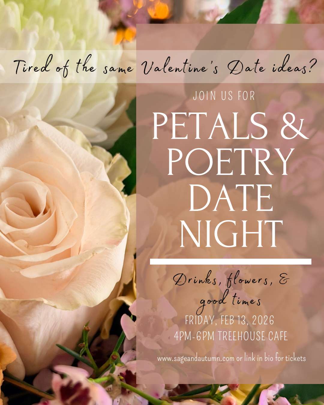 Whether you’re celebrating love, friendship, or simply treating yourself, Petals & Poetry offers a relaxed, romantic space to slow down, create, and connect.